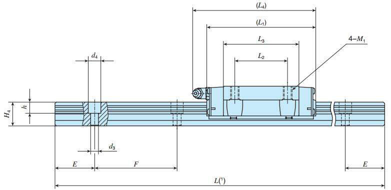 附带的滑轨(3) 安装用螺栓 mm 螺钉的公称x R:M6x22基本额定动 负荷(4) C N:30 800