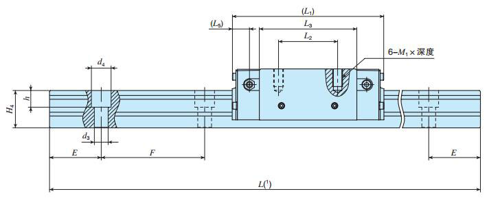 附带的滑轨(2) 安装用螺栓 mm 螺钉的公称x R:M12x40基本额定动 负荷(3) C N:95 400