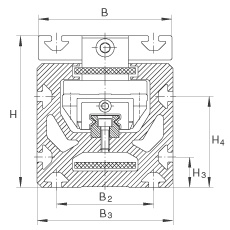 | L2 = 总行程 + L1 + 12L tot = 总行程 + L1 + L2 + 231总行程= 有效行程 + 2 x SS指适合于特殊应用的安全范围,应该至少为85 mm;总行程单位为mm。最大单根支承轨长度 L2 = 8,000 mm | ||