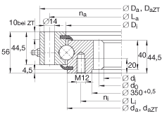 | Da ZT | 484 mm | 适用于带定心套的轴承(后缀 ZT)定心套长度(见零件图)公差:-IT8 |
