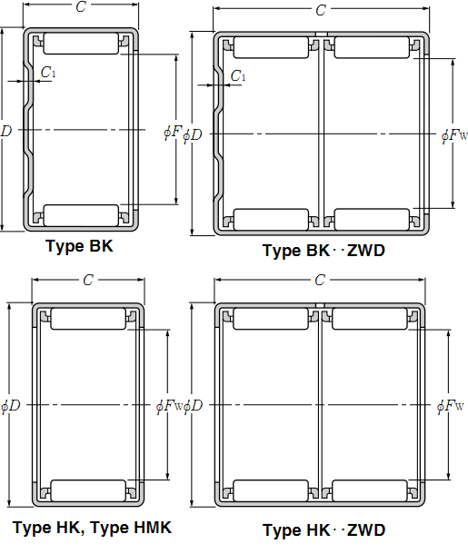 类型:NTN轴承 > 滚针轴承 > 冲压外圈滚针轴承