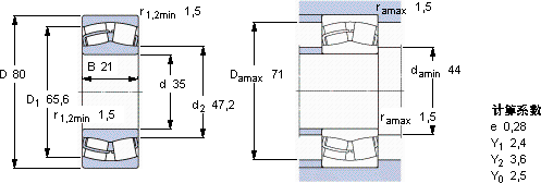 | 35 | 80 | 21 | 65,6 | 72 | 8,15 | 1400 | 0,55 | 21307 CC/W64 | |