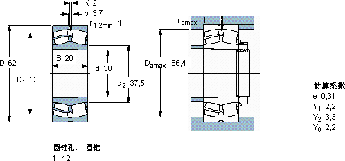 22206 EK *轴承-SKF 22206 EK *轴承尺寸、图纸、价格