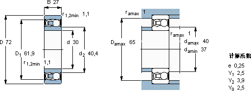 | 30 | 72 | 27 | 22,5 | 6,8 | 0,36 | - | 6700 | 0,51 | 2306 E-2RS1TN9 | |