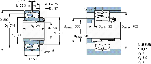 SKF 239/600 CAK/W33 + OH 39/600 H *轴承尺寸图纸