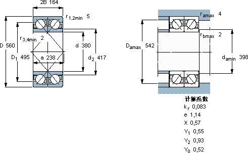 SKF 2 x 7076 BGM轴承尺寸图纸