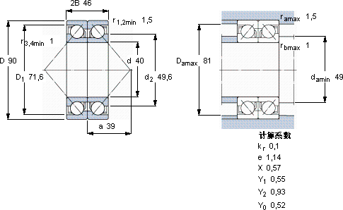 SKF 2 x 7308 BECBJ轴承尺寸图纸