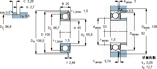 | 动态 | 静态 | 参照速度 | 限制速度 | 轴承,带止动环 | 止动环 | ||||||