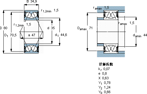 | 角接触球轴承, 双列, 两面密封件 | ||||||||||