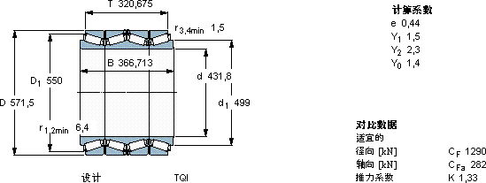 | 圆锥滚子轴承, 四列,TQI结构, TQI | |||||||||