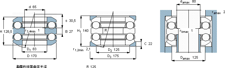 | 推力球轴承, 双向,带球面轴承座垫圈 | ||||||||||||