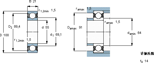 | 55 | 100 | 21 | 46,2 | 29 | 1,25 | 19000 | 4300 | 0,59 | 6211-2RS1/HC5C3WT | |
