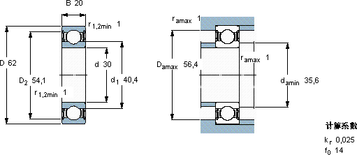 | 30 | 62 | 20 | 19,5 | 11,2 | 0,475 | - | 7500 | 0,24 | 62206-2RS1 | ||