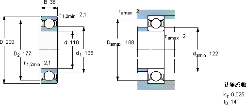 6222-2Z *轴承-SKF 6222-2Z *轴承尺寸、图纸、价格
