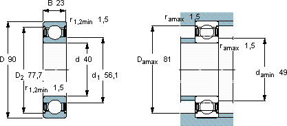SKF 6308-2Z/VA208轴承尺寸图纸