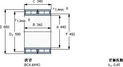 | 圆柱滚子轴承, 四列, BC4.4 | |||||||||