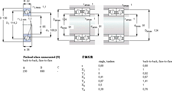 | 85 | 130 | 22 | 28,1 | 21,6 | 0,88 | 13000 | 20000 | 0,89 | 7017 ACE/P4A | - | |