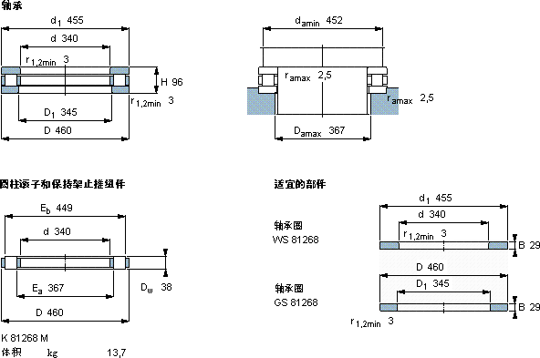 81268 M轴承-SKF 81268 M轴承尺寸、图纸、价格