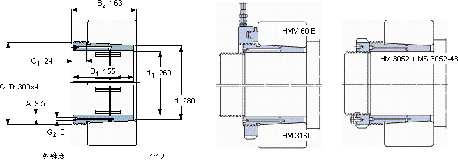 | 用于拆卸的螺母 | 液压螺母 | 螺母 + 锁紧装置 | |||||||