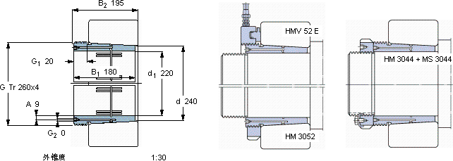 | 用于拆卸的螺母 | 液压螺母 | 螺母 + 锁紧装置 | |||||||