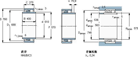 | 圆柱滚子轴承, 双列, NNUB | |||||||||||