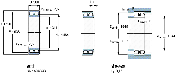 | 圆柱滚子轴承, 双列, NN.1 | |||||||||||