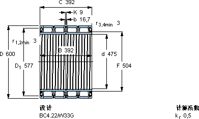 | 圆柱滚子轴承, 四列, BC4.22, 轴承孔中的螺旋槽, 两面密封件 | |||||||||