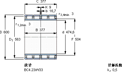 | 圆柱滚子轴承, 四列, BC4T.23, 单面密封件 | |||||||||