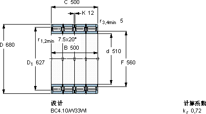 | 圆柱滚子轴承, 四列, BC4.14 | |||||||||