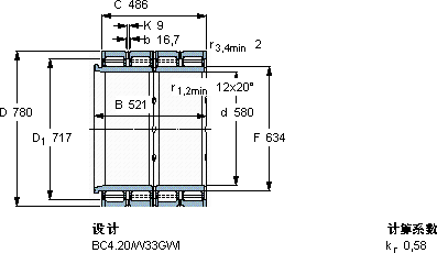 | 圆柱滚子轴承, 四列, BC4.20, 延长内圈宽度 | |||||||||