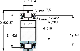 | 318 | 622,37 | 272 | 160,4 | 2920 | 4400 | 360 | 0,145 | 0,225 | 365 | BCSB 322213 CC | |