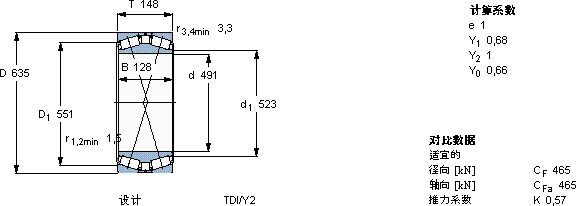 | 圆锥滚子轴承, 双列,TDI结构, TDI/Y2 /WIY2 /WIY22 TDI.1/WIY2 | |||||||||