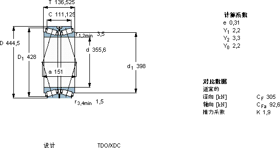 | 圆锥滚子轴承, 双列,TDO结构, TDO/C /DC /XDC TDO.1/D3 /D3C | |||||||||