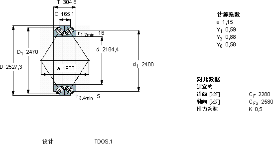 | 圆锥滚子轴承, 双列,TDO结构, TDOS.1 TDOS.1/D /D3 | |||||||||