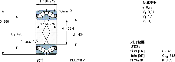 | 圆锥滚子轴承, 双列,TDI结构, TDIS.2/N1V, 两面密封件 | |||||||||