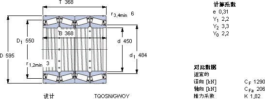 | 圆锥滚子轴承, 四列,TQO结构, TQOSN/GWOY, 轴承孔中的螺旋槽 | |||||||||
