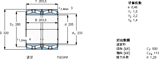 | 圆锥滚子轴承, 四列,TQO结构, TQO/WI /WIY/W | |||||||||