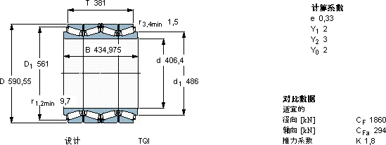 | 圆锥滚子轴承, 四列,TQI结构, TQI | |||||||||
