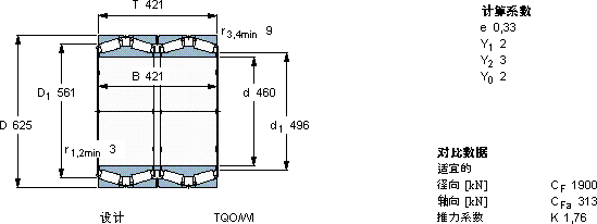 | 圆锥滚子轴承, 四列,TQO结构, TQO/WI /WIY/W | |||||||||