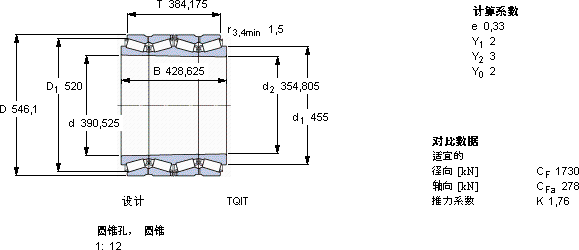 | 圆锥滚子轴承, 四列,TQI结构, TQIT, 圆锥型内孔 | |||||||||