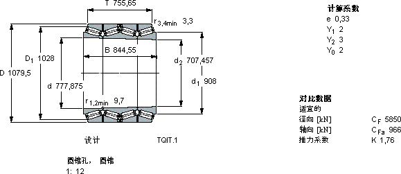| 圆锥滚子轴承, 四列,TQI结构, TQIT.1, 圆锥型内孔 | |||||||||