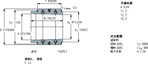 | 圆锥滚子轴承, 四列,TQI结构, TQITE.1, 圆锥型内孔 | |||||||||