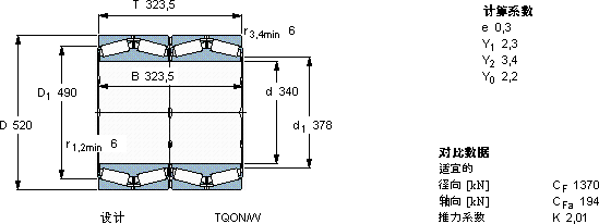 | 圆锥滚子轴承, 四列,TQO结构, TQON/W | |||||||||