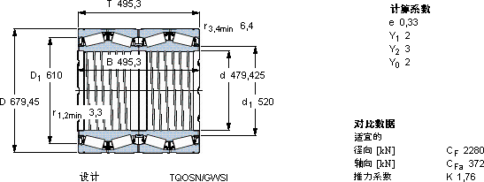 | 圆锥滚子轴承, 四列,TQO结构, TQOSN/GWSI, 轴承孔中的螺旋槽 | |||||||||