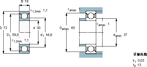 | 30 | 72 | 19 | 28,1 | 15,6 | 0,67 | 22000 | 13000 | 0,35 | E2.6306-2Z/C3 | |