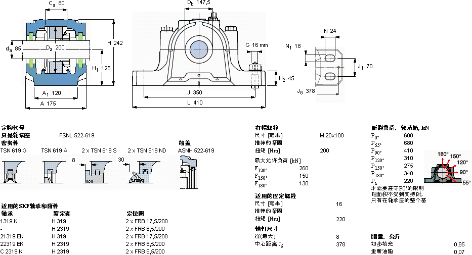 FSNL 522-619轴承-SKF FSNL 522-619轴承尺寸、图纸、价格