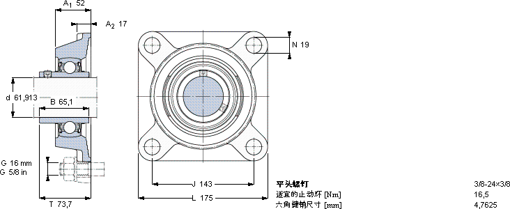 | 用于高温的Y-轴承单元,带法兰单元,方轴承座, 英制轴承 | ||||||||||
