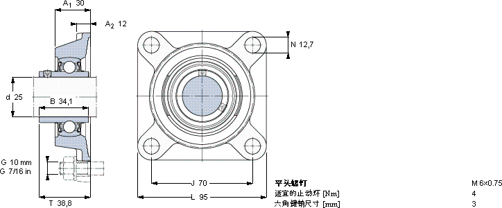 | 用于高温的Y-轴承单元,带法兰单元,方轴承座, 公制轴承 | ||||||||||
