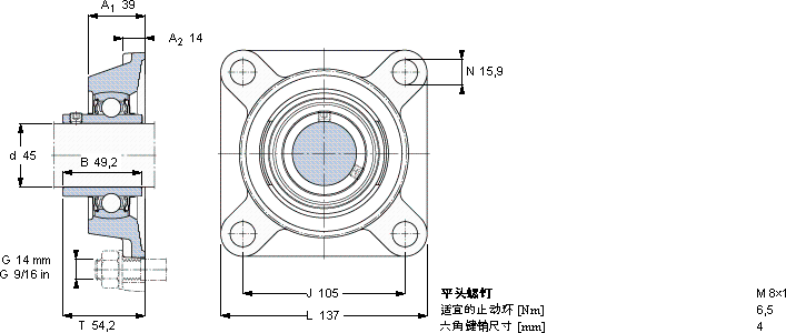 | 用于高温的Y-轴承单元,带法兰单元,方轴承座, 公制轴承 | ||||||||||