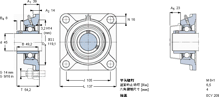 FY 45 TF轴承是【SKF轴承 > 轴承单元 > Y-轴承法兰单元】的型号,主要用在农业机械、燃料喷射泵、桥式起重机、齿轮减速装置、振动筛、起重机吊钩、钢铁厂、精细化工机械、专用车、机场加油机等各大领域。